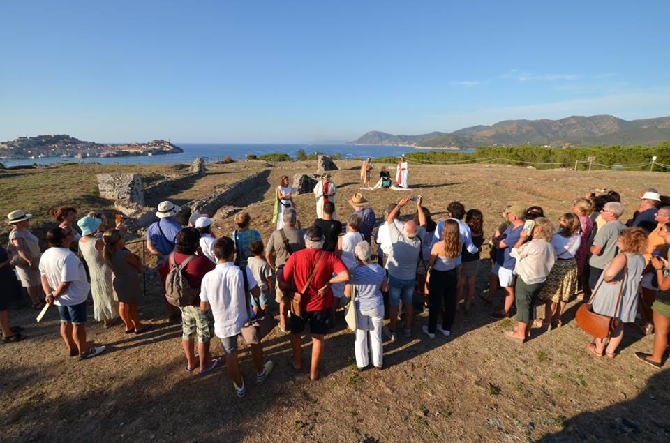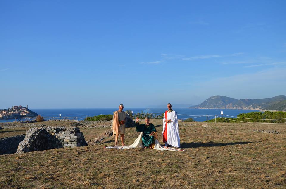In una calda serata estiva nello scenario spazioso e panoramico del promontorio delle Grotte, con la regia e sceneggiatura, nonché “voce narrante” della giovane direttrice scientifica, l’archeologa Laura Pagliantini, ha avuto luogo giovedì 27 luglio una rievocazione della vita e opere del poeta latino. Il grande Ovidio è tornato tra noi, sotto la scorta di centurioni armati ma gradito ospite dell’amico e padrone di casa della nobile ed antica famiglia dei Valerii, nel momento di maggiore crisi nella vita del poeta: la consegna della notifica di espulsione da Roma, arrivata all’isola d’Elba direttamente dall’imperatore Augusto, con la conseguente relegatio a Tomi, ai confini dell’impero, nell’attuale Romania.