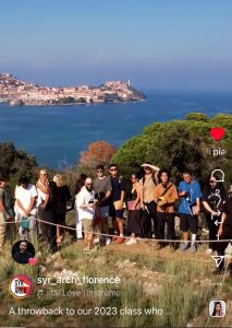 Abbiamo poi avuto una bella sorpresa: un suggestivo video dedicato a una delle visite di studio all’isola d’Elba della Syracuse University di Firenze, parte del programma del Dipartimento di Architettura. Il video, dal titolo A throwback to our 2023 class through the lens of “The Impossibility of an Island”, si apre con una splendida inquadratura del panorama di Portoferraio visto dal promontorio delle Grotte.